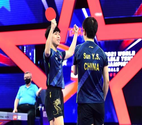 作为头号种子,王楚钦和孙颖莎首轮面对埃及选手奥玛·阿萨尔/蒂娜·梅谢芙。比赛中,实力占优的中国组合在技术、配合等环节均明显高出对手一筹。二人除了在前两局稍遇对手抵抗,大部分时间均牢牢掌控着比赛节奏,直落四局赢下比赛,比分分别为11:7、11:8、11:4、11:3。