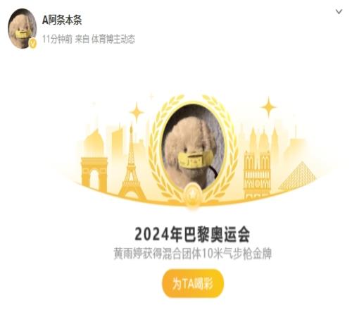 体育资讯07月27日报道宣称 巴黎奥运会,射击项目混合团体10米气步枪金牌赛,中国00后组合黄雨婷(17岁)/盛李豪(19岁)大比分16-12击败韩国组合夺得巴黎奥运会首金。