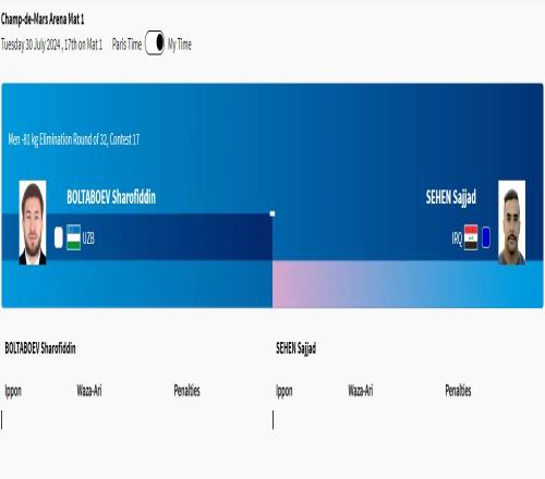 萨贾德原本将参加男子柔道81公斤级比赛,他将在1/16决赛中对阵乌兹别克斯坦选手博尔塔博耶夫。