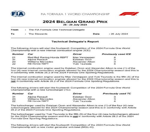 体育资讯7月26日报道宣称 官方消息,维斯塔潘因为更换上赛季第5套内燃机(赛季规定数额为4套),将确定在正赛中罚退10位发车。同时,维斯塔潘还更换了全新的排气系统。