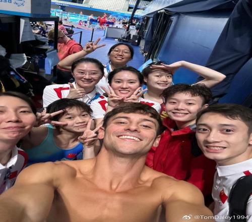 体育资讯7月25日报道宣称 英国跳水名将戴利晒出了与中国跳水梦之队的合影。