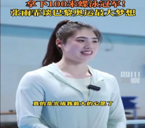 张雨霏:巴黎奥运会最希望100蝶夺冠,夺冠将完成自己最大的心愿