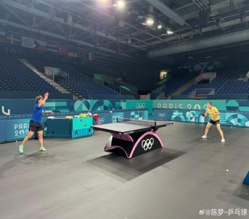 中国乒乓球队在昨天已经前往了乒乓球比赛场馆,进行了到达巴黎后的第一次训练。