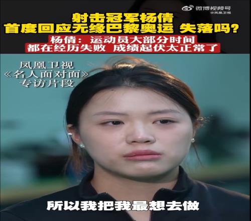 杨倩回应无缘巴黎奥运:成绩起伏正常,外界可能认为冠军才是成功