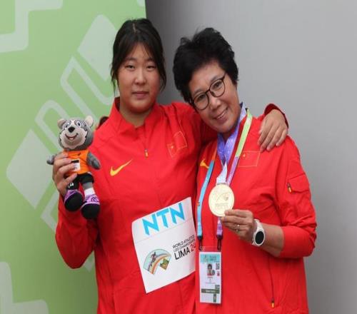 严子怡和卢秀荣(右)教练。