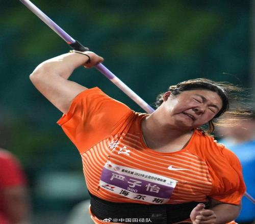 严子怡在衢州再度刷新女子标枪青年世界(20岁以下)纪录。 图片来源:中国田径队