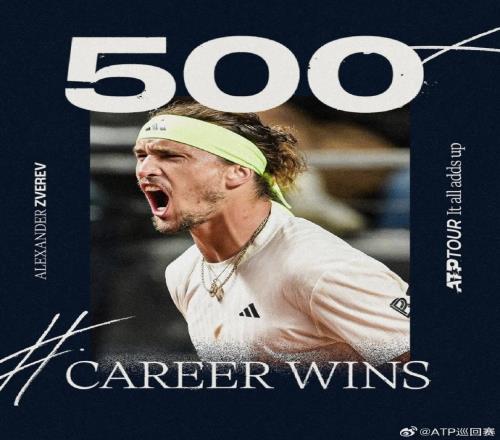 兹维列夫成为现役第5位达成500胜的选手,也是首位达成这一成就的90后球员。其余4位分别是德约科维奇(1150胜)、西里奇(593胜)、孟菲尔斯(583胜)、瓦林卡(580胜)。