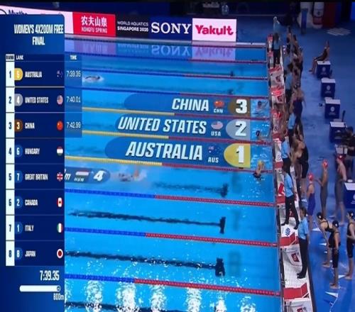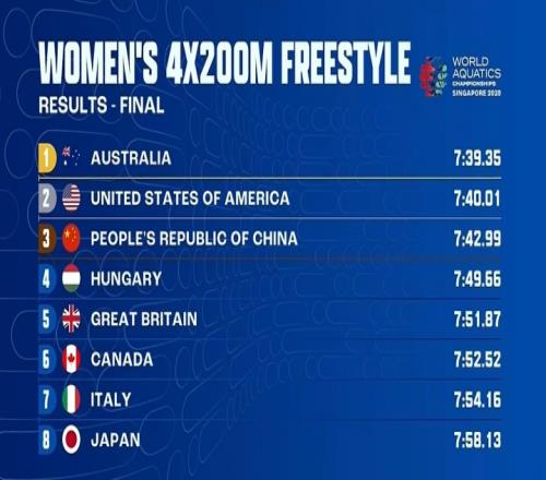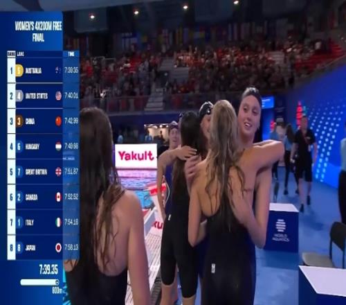 女子4x200米自由泳接力决赛:中国队摘铜,澳大利亚队夺金