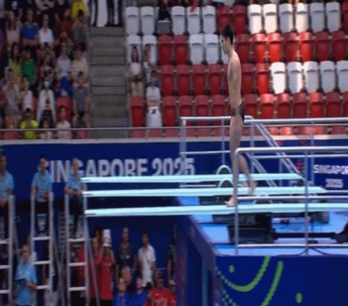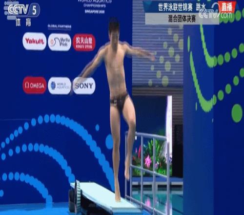 世界泳联世锦赛跳水混合团体决赛,新加坡男选手跳板走板严重失误,未能做出动作,直接落水。