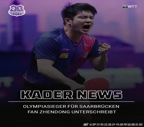 体育资讯07月04日报道宣称 萨尔布吕肯乒乓球俱乐部确认,樊振东将在8月31日迎来德甲首秀!