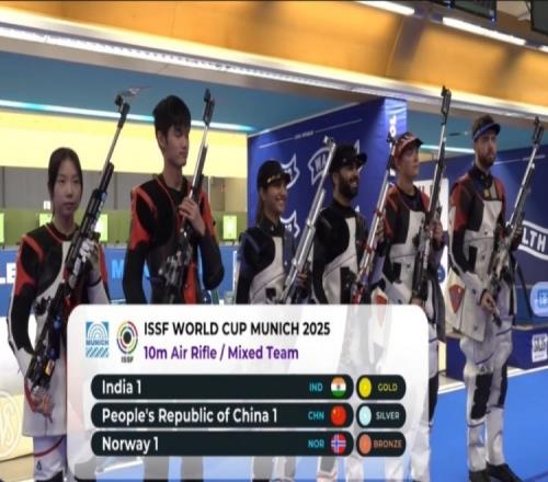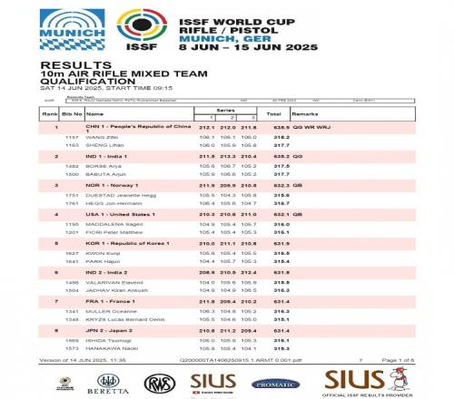 体育资讯6月14日报道宣称 6月14日在德国慕尼黑,射击世界杯(步手枪)德国站结束10米气步枪混合团体比赛。资格赛打破世界纪录的王子菲/盛李豪在金牌战中以7-17大比分输给印度博尔瑟/巴布塔,获得亚军。挪威组合夺得铜牌。