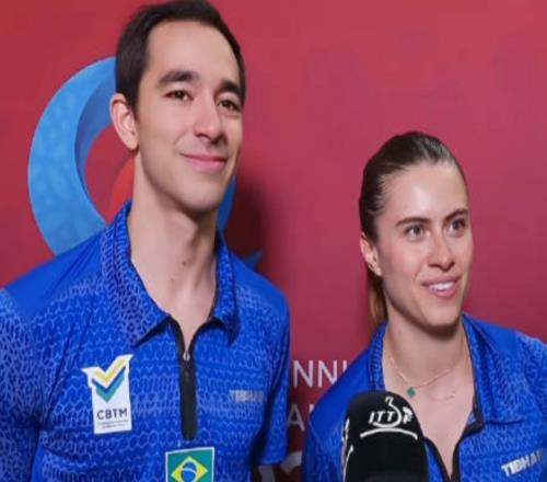 体育资讯5月19日报道宣称 乒乓球世界杯冠军雨果和女友高桥布鲁娜搭档混双参加世乒赛,第一轮顺利晋级。