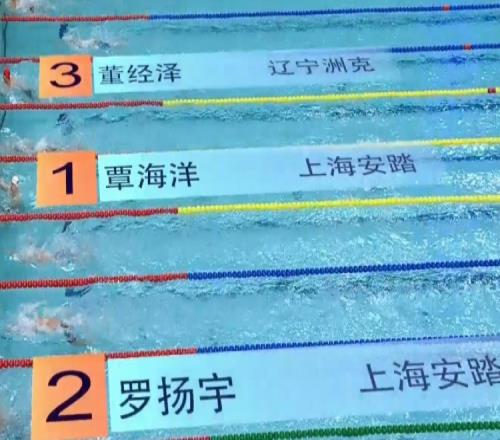 覃海洋第二组出战,游出26秒88,排名小组第一。