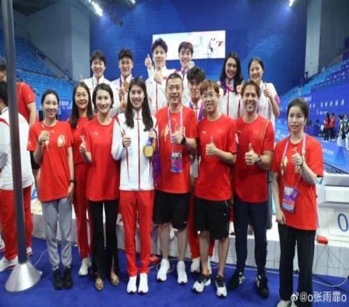 崔登荣还建立了“崔 TEAM”复合型训练团队,团队里有年轻教练、退役运动员、体能师、医生,还有来自高校的体育科研专业学生。他坚信团队的力量,通过合理布置训练任务并进行把控,实现了给张雨霏制定的三年计划。在东京奥运会上,23岁的张雨霏一扫阴霾,夺得女子200米蝶泳冠军、女子100米蝶泳亚军、4×100米混合泳接力亚军、女子4×200米自由泳接力冠军,惊艳了国际泳坛。赛后,美国游泳队著名教练大卫·马什主动向崔登荣表示祝贺,“你如何能够做到让一名运动员同时兼顾100米和200米蝶泳两个项目的?”崔登荣笑着回答:“我也是跟你学的!”两人拥抱在一起,场面令人动容。