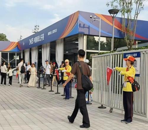 在国家网球中心各观众出入口,公共文明引导员们早早到岗,为前来观赛的球迷提供入场指引、购票咨询、检票协助等贴心服务。“请有序排队入场”“比赛期间请保持安静”“离场时记得带走垃圾”……一句句温馨提示,传递着文明观赛的理念。