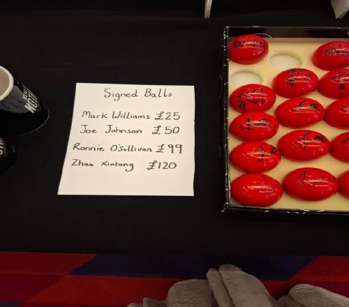 据博主“瓶盖说”透露,在克鲁斯堡纪念品商店,赵心童的签名球卖到了120英镑,而奥沙利文的签名球的价格则为99英镑。世锦赛亚军马克-威廉姆斯的签名球价格为25英镑。