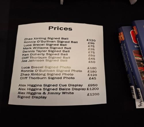此外,赵心童的签名照同样为120英镑,奥沙利文和布雷切尔的签名照则为180英镑。