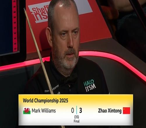 体育资讯05月04日报道宣称 斯诺克世锦赛决赛第一阶段,赵心童vs马克-威廉姆斯,首局赵心童141-0零封对手,次局赵心童逆转,目前2-0领先。