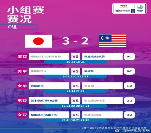 苏迪曼杯:日本逆转马来西亚&小组第一出线,印尼D组第一出线