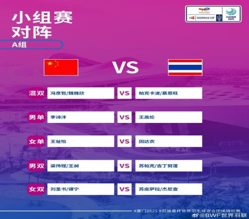 体育资讯4月30日报道宣称 今天17点,苏迪曼杯小组赛第三轮,国羽将与泰国队争夺小组头名。赛前,两个队公布了本场比赛的出场阵容。