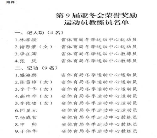 体育资讯4月30日报道宣称 河北省人力资源和社会保障厅、河北省体育局联合发文,对参加第9届亚冬会的河北运动员林孝埈等人实施荣誉奖励。