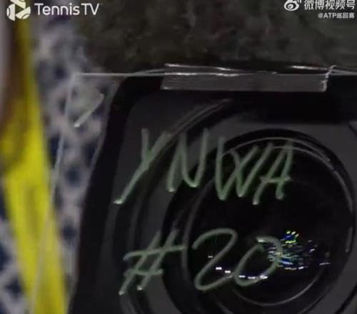 网球名将鲁德获胜后在镜头写下“YNWA,20”,庆祝利物浦英超夺冠