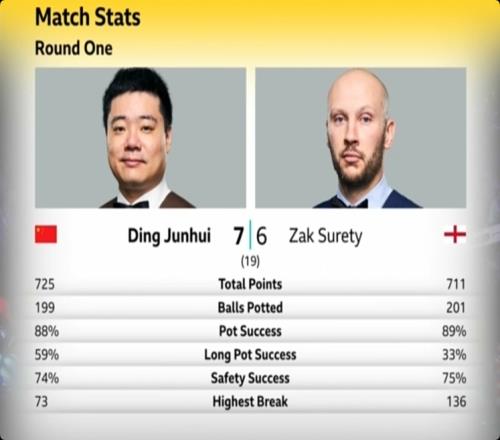 体育资讯04月22日报道宣称 2025斯诺克世锦赛第一轮,第一阶段结束后丁俊晖取得了6-3的领先。