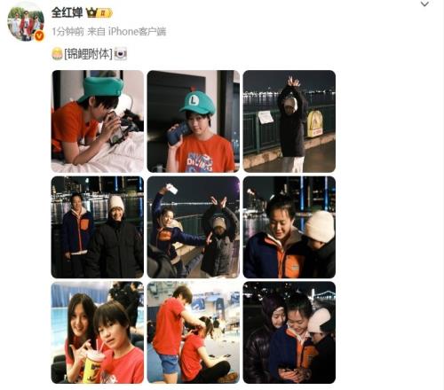 照片中全红婵带着路易吉同款帽子,并配文:锦鲤附体