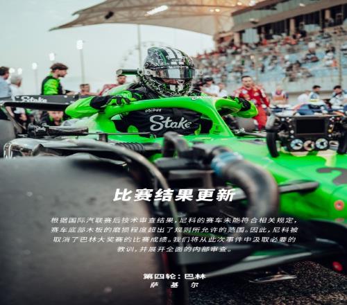根据国际汽联赛后技术审查结果,尼科的赛车未能符合相关规定,赛车底部木板的磨损程度超出了规则所允许的范围。因此,尼科被取消了巴林大奖赛的比赛成绩。我们将从此次事件中汲取必要的教训,并展开全面的内部审查。