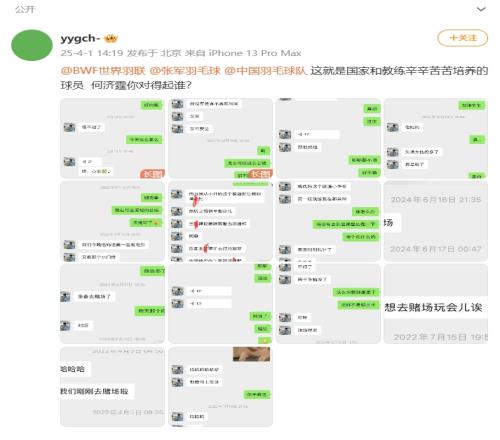 疑似国家队羽毛球运动员何济霆的女友、微博用户yygch-在网上爆料多段聊天记录和电话录音,直指何济霆辱骂队友、教练、领导乃至乒乓球圈,甚至还参与赌博。
