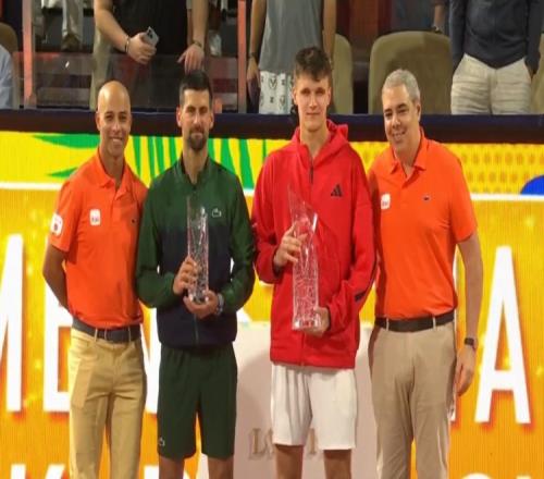 门希克说道:“诺瓦克,每个人都知道你就是我能站在这里的原因。我看着你的比赛长大。因为你,我才开始打网球。对于网球运动员来说,没有比在一项赛事的决赛中击败你更艰难的任务了。非常感谢你为这项运动所做的一切,也感谢所有人。你是一个不可思议的人,有史以来最伟大的球员。”