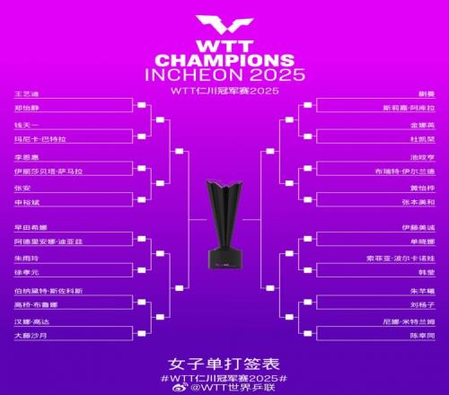 WTT仁川冠军赛女子单打签表:首轮王艺迪对战郑怡静