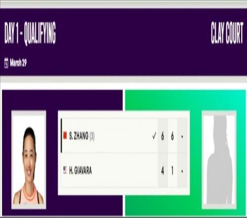 体育资讯3月30日报道宣称 WTA500查尔斯顿站,中国选手张帅在资格赛首轮2-0取胜,挺进决胜轮。