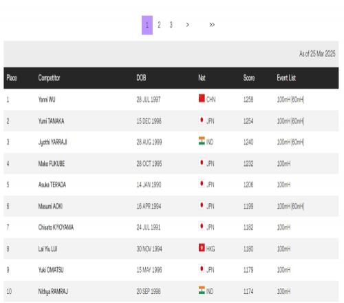 亚洲第一!世界田联最新积分:吴艳妮超田中佑美,加冕亚洲一姐!