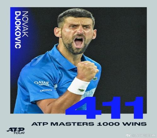 这是诺瓦克职业生涯第411场大师赛胜利,他也甩开纳达尔(410),成为该级别赛事胜场数最多的球员!