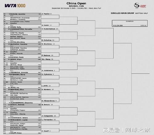 我们再来关注中网。北京时间昨晚,WTA1000中国网球公开赛公布了女单正赛签表。前八大种子的对位:上半区,斯瓦泰克--佩古拉、郑钦文--米拉-安德列娃;下半区,阿尼西莫娃--鲍里妮、莱巴金娜--高芙。