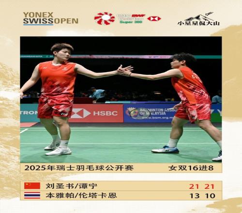 体育资讯3月21日报道宣称 2025年瑞士羽毛球公开赛女双次轮,刘圣书/谭宁21-13 21-10战胜本雅帕/努特卡恩,晋级八强。