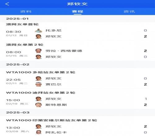 此前在澳网、WTA1000多哈站和WTA1000迪拜站,郑钦文接连在第二轮不敌西格蒙德、贾巴尔、斯特恩斯,状态陷入低谷。