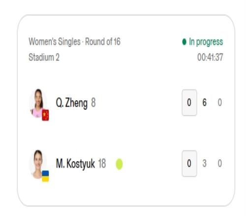 第四局,郑钦文兑现破发点,3-1领先,但随后郑钦文马上遭科斯秋克回破;