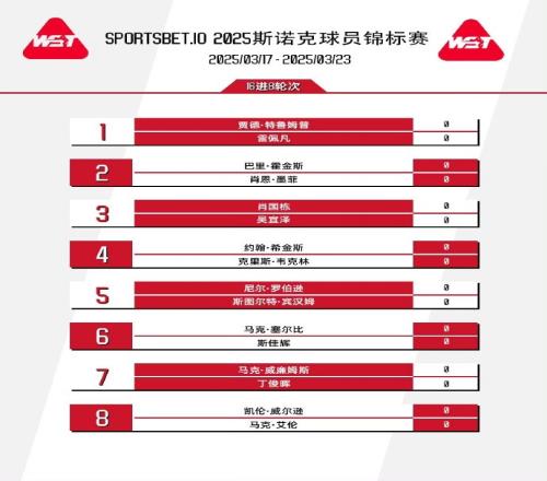 体育资讯3月10日报道宣称 SPORTSBET.IO 2025斯诺克球员锦标赛签表出炉,本届赛事将于3月17日至3月23日在特拉福特举行,共有5名中国选手参加,具体签表如下: