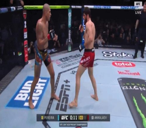 其中第二回合尾声,安卡拉耶夫一拳打晃了佩雷拉。
