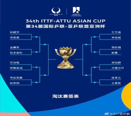 深圳亚洲杯女单16强对阵:孙颖莎vs李恩惠早田希娜vs陈幸同