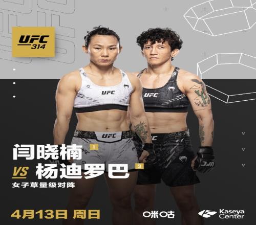 体育资讯2月20日报道宣称 UFC314终极格斗冠军赛将在4月13日开战,闫晓楠将在女子草量级对阵杨迪罗巴。