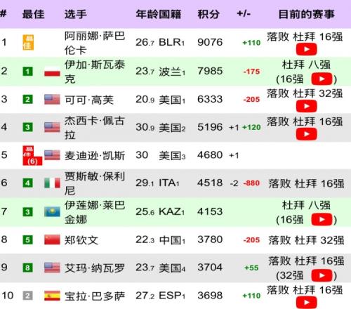 不过在纳瓦罗止步迪拜站第三轮后,她的积分并未超越郑钦文,因此目前郑钦文暂时保住了世界第8的排名。