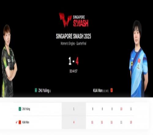 WTT新加坡大满贯女单14决赛,蒯曼战胜朱雨玲,晋级四强