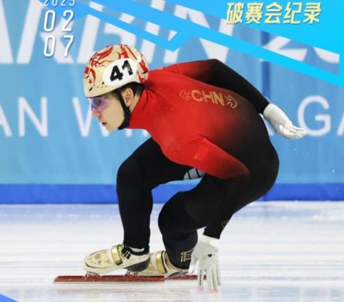 体育资讯2月7日报道宣称 在亚冬会短道速滑男子1500米四分之一决赛中,中国选手刘少昂打破赛会纪录!