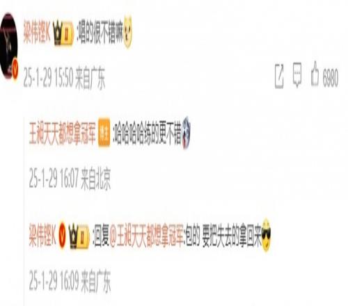 梁伟铿评论区调侃王昶上春晚:“唱的很不错嘛”