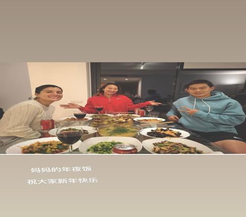 郑钦文写道:“妈妈的年夜饭,祝大家新年快乐!”