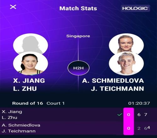 本场比赛中,蒋欣玗/朱琳以6-2、7-6(4)击败施米德洛娃/泰希曼。