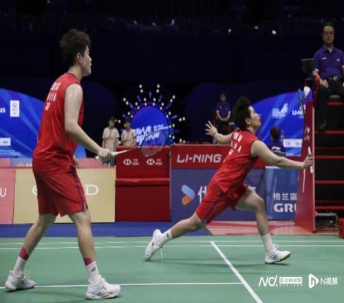 以世锦赛女双冠军身份亮相的刘圣书/谭宁在首日比赛中,以21比11、21比16轻取印尼组合兰妮/阿玛莉亚。
